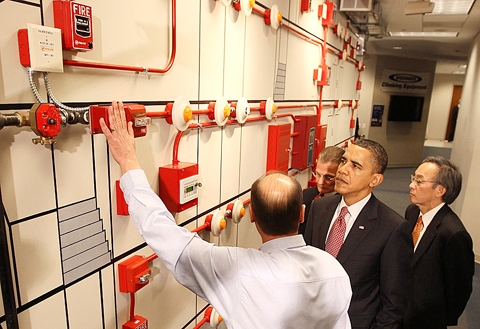 Obama is pushing for a law that would cap greenhouse gas emissions from industry and expand the use of renewable fuel sources such as wind and solar.