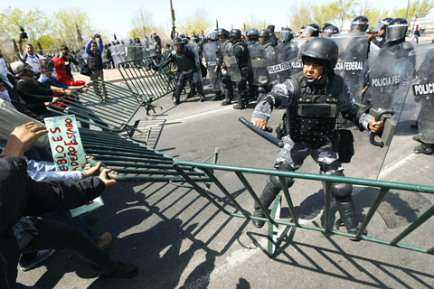 Calderon was met with protests by hundreds of residents frustrated by almost daily attacks, extortion and kidnappings that plague Ciudad Juarez despite the deployment of around 6,000 troops in the violent city of some 1.3 million.