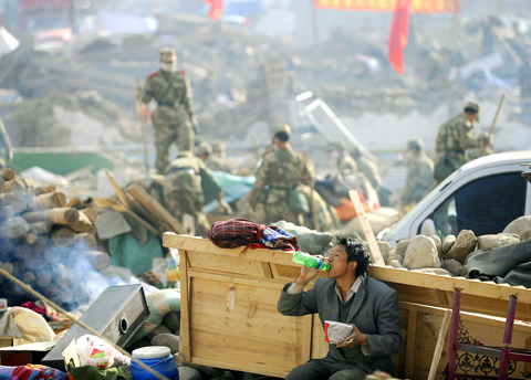 Infrastructure in Jiegu suffered major damage in the quake, with the water supply “basically paralyzed,” Xia Xueping (夏雪萍), spokesman for relief efforts, told a news briefing in the town.