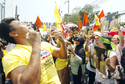 Amid fears of factional violence between the two camps, the Yellow Shirts said they held similar rallies yesterday at more than 40 army bases across the country, demanding an end to “anarchy” in the capital.