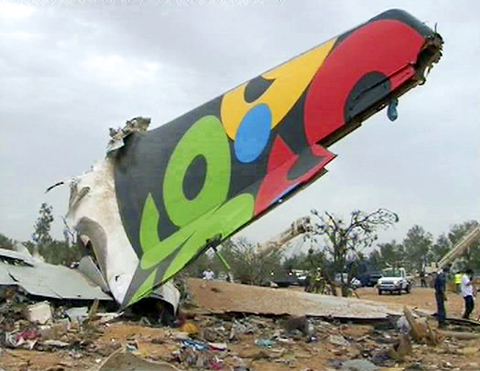 Others sifted through debris — some of it still smoldering — including a flight recorder and green seats with television screens on them. A large piece of the plane’s tail was visible, bearing Afriqiyah’s brightly colored logo with the numbers “9.9.99,” a reference to the date of the founding of the African Union.