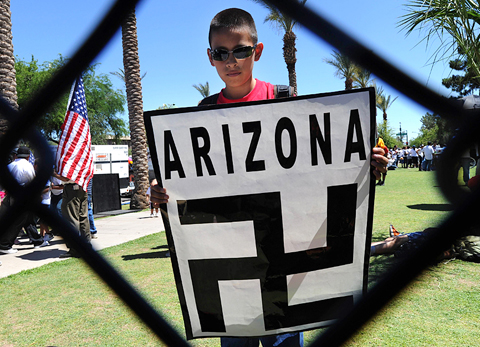 Thousands of civil rights and labor activists from across the US — carrying banners that read: “Obama Keep Your Promise” — rallied in Phoenix to protest the law, which requires state and local police to investigate the immigration status of people they suspect are in the country illegally.