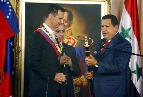 He praised Chavez for standing up to the US and supporting the Palestinians. Chavez’s outspoken stances in favor of Iran and against Israel have given him a following in the Middle East, and Assad referred to him at one point as an “Arab leader.”