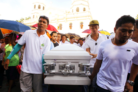 Mendoza’s son, Vismark, who is also a police officer, attended the funeral in his police uniform, in full view of a group of Hong Kong photojournalists.