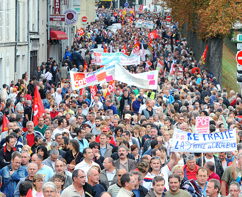 The French unions, who backed street marches on Saturday over French President Nicolas Sarkozy’s law-and-order stance following a mass expulsion of Roma immigrants, hoped 2 million people or more would take to the streets for yesterday’s pension protest.