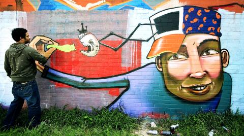 Gently spraying a character on a mural-covered Cape Flats wall, Starr had few concerns.