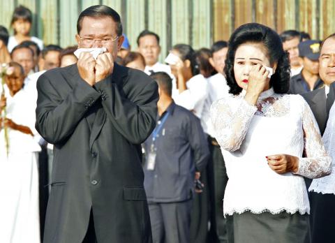 At the memorial ceremony, Hun Sen’s wife, Bun Rany, stood at her husband’s side and openly cried as a military band played a somber tune. Other government officials, including Foreign Minister Hor Namhong and National Assembly President Heng Samrin, also paid their respects.