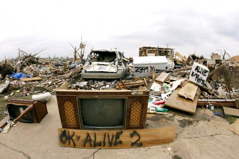 More than 8,000 structures in this town bordering Kansas and Oklahoma were damaged or destroyed when the twister came roaring through with just a 24-minute warning.