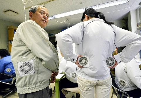 “I work in a very hot place and have to wear long sleeved outfits, so I came over to buy this to stay cool and to prevent heat stroke,” said Ryo Igarashi, 33, as he left the Kuchofuku office after buying an air-conditioned jacket.