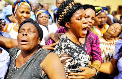 During his address in the church, many worshippers cried uncontrollably, including two women who lost their husbands and four children in the Christmas Day bombing.