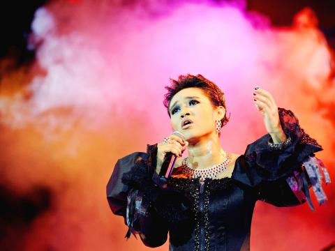 Singing Burmese translations of international hits like Bon Jovi’s You Give Love A Bad Name, Phyu Phyu Kyaw Thein is famed for her feathered masquerade masks, rhinestone glamor and dramatic ball gowns.