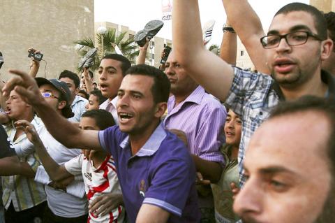 At a school in the upmarket Cairo neighborhood of Heliopolis, women braved the heat yesterday to stand in line and vote.