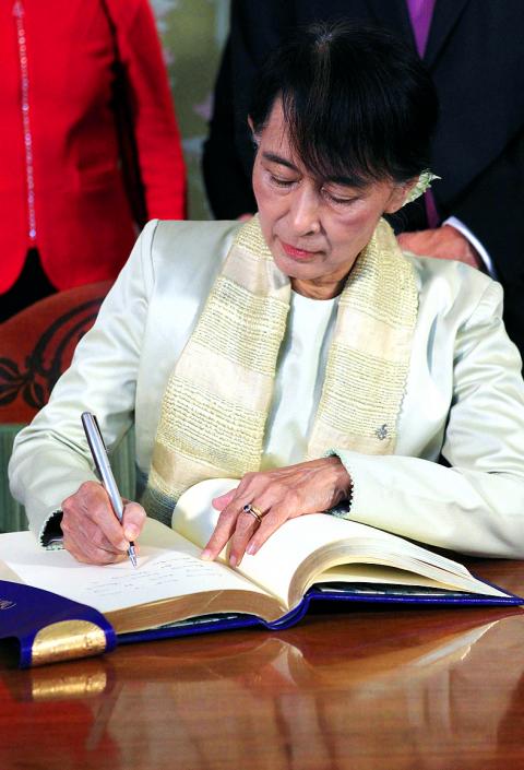 This week, back in Europe for the first time in 24 years, Western supporters and Burmese exiles are cheering her along a whirlwind tour that started in Switzerland and will also take her to Britain, Ireland and France.