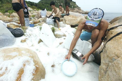 Also known as nurdles, the pellets are the raw materials used by factories to make plastic products. Authorities say six containers filled with the pellets were lost from a ship in waters south of Hong Kong when it was caught in Typhoon Vicente last month.