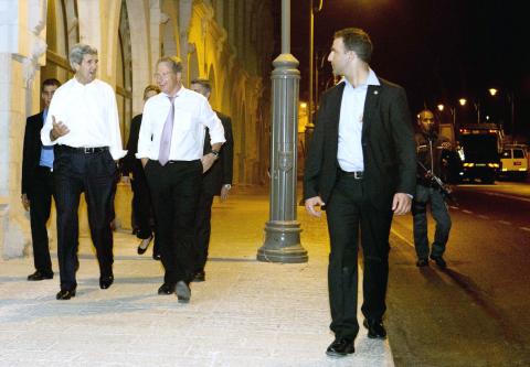 Afterward, Kerry strolled through the deserted streets of the city accompanied by his security and one of his advisers on the Middle East, Frank Lowenstein.