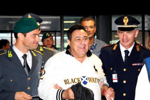Roberto Pannunzi, who fled from an Italian prison in 2010, smiled and chatted with officers as he arrived at Rome airport surrounded by Italian police and dressed in a white polo shirt and dark trousers — the same clothes he was detained in, a police video showed.