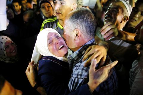 Eleven of them received a hero’s welcome at the Muqataa presidential compound in the West Bank city of Ramallah where they were met by thousands of cheering, dancing supporters at a ceremony addressed by Abbas.