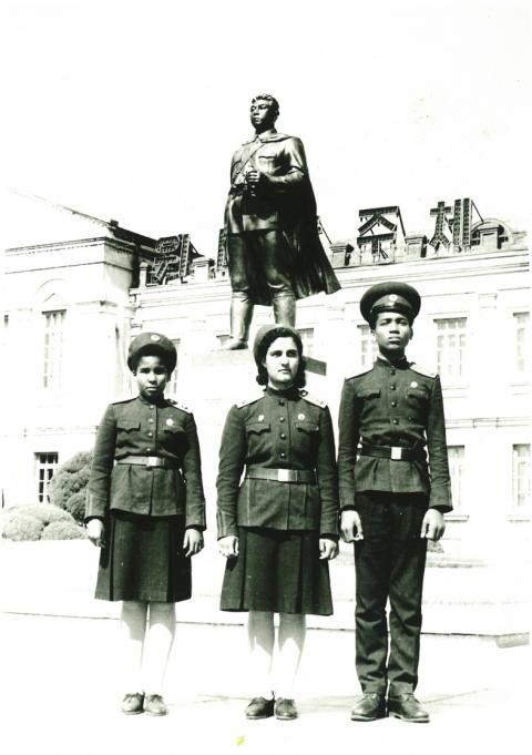 At the Mangyongdae Revolutionary School, the uniform worn by Macias and her sister and brother was a military-style jacket with officer’s pips on the epaulettes and a green cap emblazoned with a shiny red star.