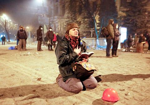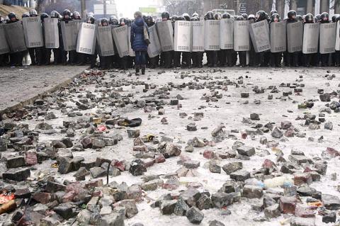 The situation was tense yesterday, with thousands of protesters still facing down a line of armor-clad security forces blocking access to the Verkhovna Rada parliament.