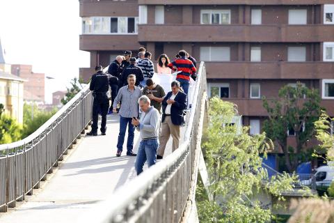 Police put a white sheet over Carrasco’s body as it lay on a pedestrian bridge above the Bernesga River in the northern city.
