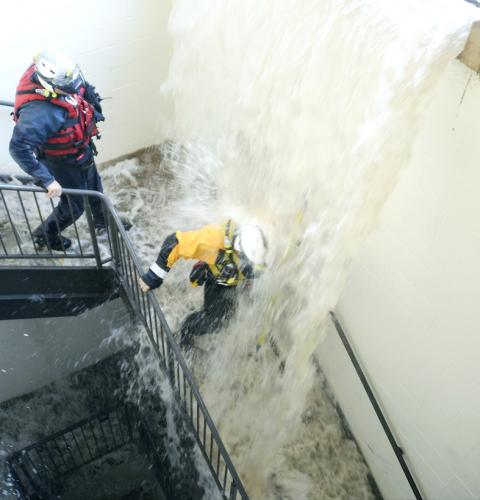 On Wednesday evening, six men helping to pump water out of the pavilion were treated for exposure to carbon monoxide from a generator’s exhaust, city fire spokeswoman Katherine Main said. Two were taken to a hospital in fair condition and four were treated onsite, she said. The generator was shut off and the building was aired out.