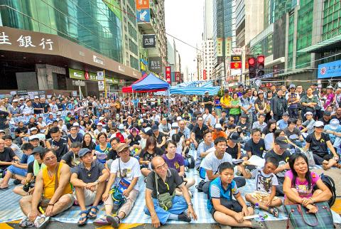 Among the crowds sitting on the ground fanning themselves in the evening heat were two language students, Mathias Chan and Andy Cheng, who want the world to know what is happening in the territory in hopes of pressuring Beijing.
