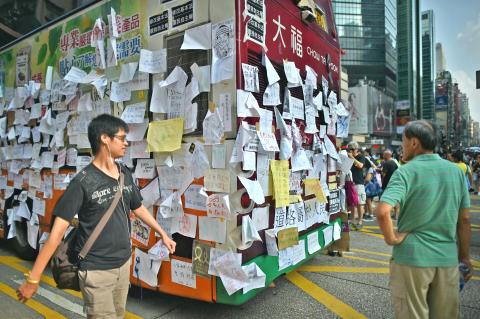 One wet piece of paper, directed at Hong Kong Chief Executive Leung Chun-ying (梁振英), still read: “This is not your city to rule.”