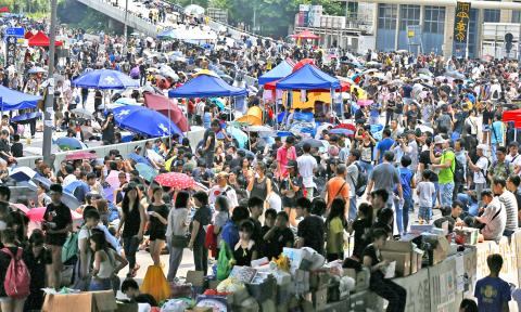 Overnight into yesterday, police were hardly visible and the tens of thousands of people roamed freely. Here are some snapshots showing the atmosphere on Hong Kong’s streets: