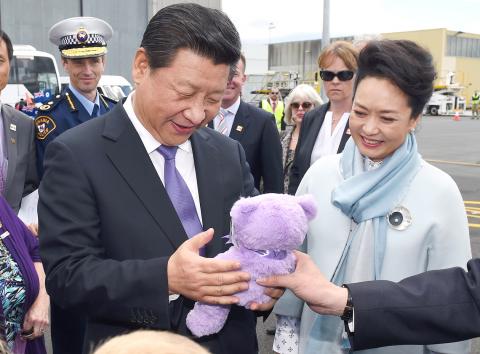 When Chinese President Xi Jinping (習近平) stepped on to the airport tarmac in Australia’s smallest state, Tasmania, he was presented with a purple fluffy toy called Bobbie.