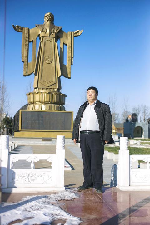The gleaming gold-yellow sculptures are part of a 50 million yuan (US$8 million) complex built by Wang Dianming (王殿明), a portly former general who says his fortune comes from a series of travel and educational companies.