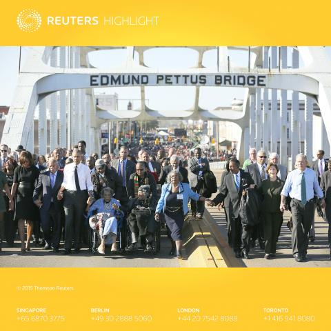 “We come to Selma to be renewed, we come to be inspired,” Lewis said. “We were beaten, tear gassed, some of us were left bloody right here on this bridge. Seventeen of us were hospitalized that day. But we never became bitter or hostile.”