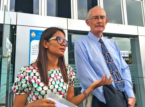The charges against Alan Morison and his Thai colleague, Chutima Sidasathian, of the Phuketwan news Web site, relate to a July 2013 article quoting an investigation by the Reuters news agency that said some Thai navy members were involved in trafficking Rohingya Muslims fleeing Myanmar.