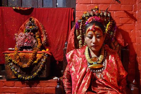 The Kumari, a prepubescent girl from the Newar community, is considered an embodiment of the Hindu goddess Taleju.