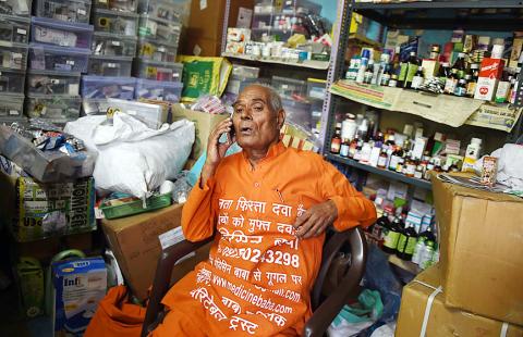 In his trademark bright orange smock, Sharma cuts a familiar figure in Delhi’s leafy neighborhoods, and residents routinely carry out handfuls of medicines for him.