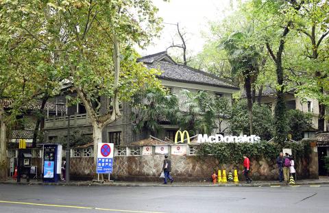 The McCafe opened on Friday last week in the former residence of former president Chiang Ching-kuo (蔣經國), near West Lake in Hangzhou, Zhejiang Province.