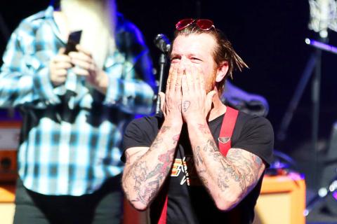 Eagles frontman Jesse Hughes bounded off the stage to hug a survivor in her wheelchair, as the night wore on and the emotion grew.