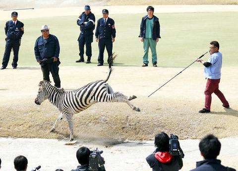 Ueno Zoo, which staged the zebra escape drill last month, said the animals are easily panicked.