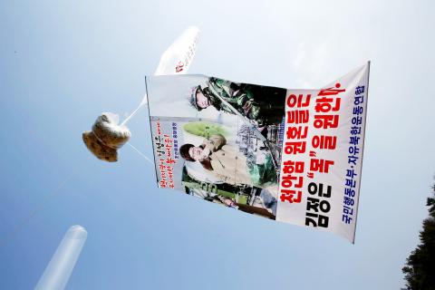 Defector-turned-activist Sanghak Park and his colleagues released 50,000 leaflets tied to three large balloons from an empty field near Paju City close to the border with North Korea, marking the sixth anniversary of the sinking of a South Korean warship with the loss of 46 sailors.