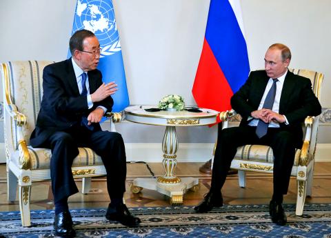Ban said in the prepared remarks that Russia “has a critical role to play” in addressing global issues “from ending the conflicts in Ukraine and Syria, to safeguarding human rights and controlling the proliferation of weapons of mass destruction.”