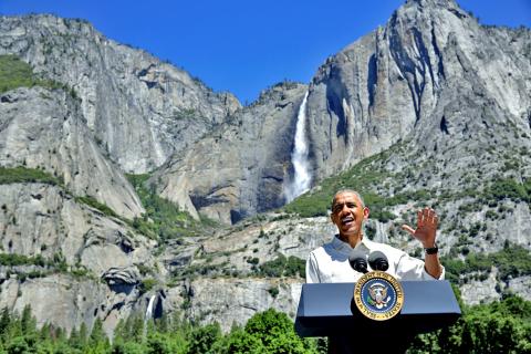 “Make no mistake. Climate change is no longer just a threat. It’s already a reality,” Obama said from a podium, with Yosemite Falls, one of the world’s tallest at 739m, as a backdrop.