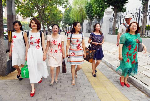 This week, five of them donned dresses emblazoned with their husbands’ names and marched to a national prosecutors’ office in Beijing — surrounded by dozens of police.