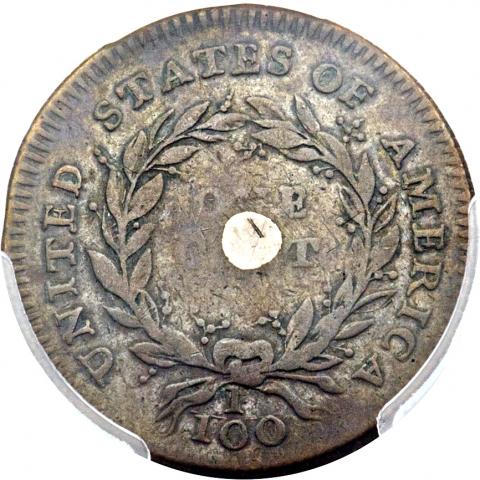The origin of the Silver Center Cent was referenced in a letter from US founding father Thomas Jefferson to the US’ first president, George Washington, and it is among the very first coins ever struck by the US Mint in Philadelphia, Bradley said.