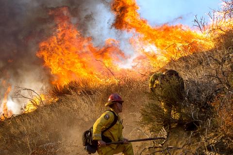 Dramatic local TV news footage of the wildfire captured from the front line in the town of Phelan showed tornado-like flaming vortexes — known as “firenadoes” — sent spinning into the air by the unusual ferocity of the blaze.