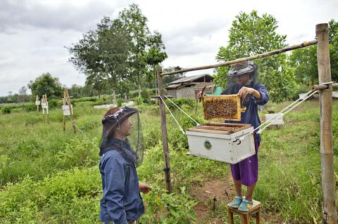 Dararath is now a beekeeper. A spin-off benefit is that for every 50 boxes she cultivates, she harvests 300kg of honey, which sells for 150 to 500 baht per kilogram. The beeswax can sell for about that much.