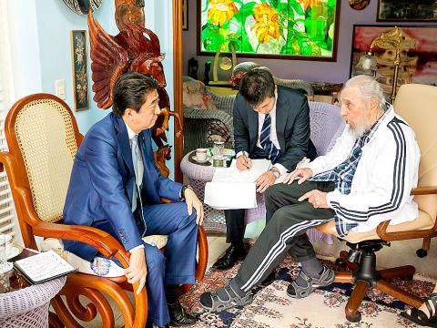 Abe and Fidel Castro “discussed the complexities and hazards affecting the world and the need to strengthen efforts toward the elimination of nuclear weapons and preservation of peace,” an official statement that was read on television said.
