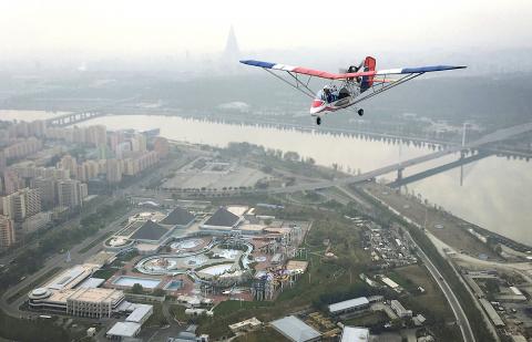 The flights are not cheap — a 25-minute ultralight ride from the airstrip on the outskirts of the city to Kim Il-sung Square and the Juche Tower, which had previously been the best place to get an urban panorama, costs about US$150.