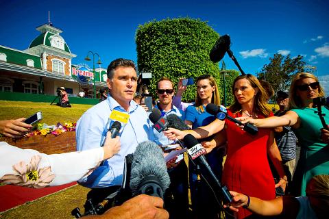 Dreamworld chief executive officer Craig Davidson laid a wreath at a memorial to the victims at the park’s entrance yesterday, as engineers began gathering forensic evidence of what had gone wrong.