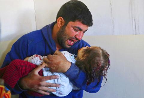 At one point, four children and a man from the same family were rushed into the station, bleeding heavily as their relatives wailed in grief. A mortar round had slammed into the inner courtyard of their home. A few minutes after being brought to the aid station, a 15-month-old girl with a head wound was pronounced dead.