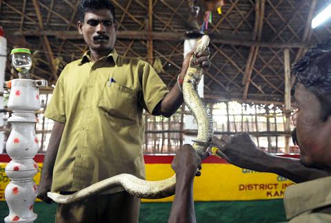 Kali is to be paid 300 rupees (US$4.41) for the viper under a tariff system that rises to 2,500 rupees for a cobra.