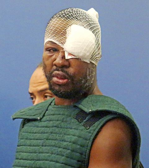 Loyd later appeared with both eyes swollen shut and blood oozing from his mouth. He was hospitalized overnight and then jailed before his initial appearance on Thursday.